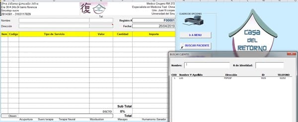 El código esta hecho en visual basic editor de excel, envío la foto del formulario y el código, y la foto del la hoja principal donde esta la factura