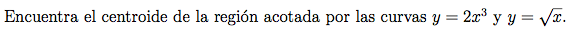 MatemáticasCálculoCiencias e IngenieríaFísica Anónimo el 29 abr. 19 Encontrar el centroide de la región acotada por las siguientes curvas Seguir Siguiendo Dejar de seguir