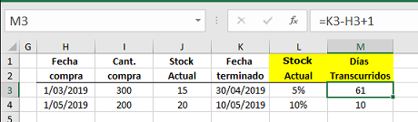 Como puedo con fórmula acer que me diga de facha de compra a fecha de terminado los días y meses transcurridos y como poner el porcentaje transcurrido si 100% son 300 litros cuando quedan 15 litros seria 5%