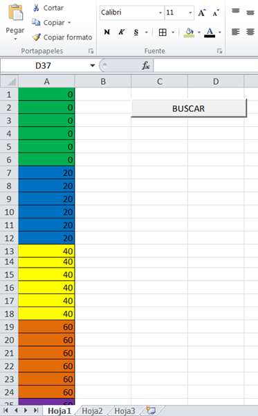Bucle que busque en excel varios valores dentro de una tabla de registros y le de un determinado color a través de visual basic