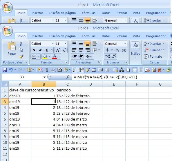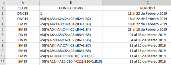 Tengo un problema para generar un consecutivo, tomando 2 criterios, Columna A y Columna C. Por ejemplo, si las celdas A2 y A3 son iguales, así como C2 y C3, que mantenga el número anterior, pero si el valor de alguna columna cambia (A5), que sea el número siguiente.