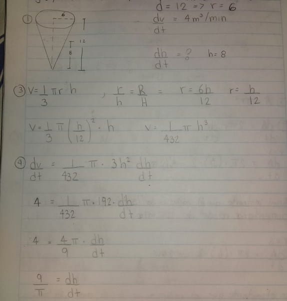 Aplicación de derivadas Razón de cambio problemas con el cono