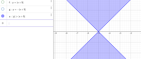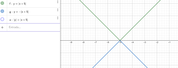Grafique el conjunto Ω={z∈C| |Re(z) 5|<|Im(z)|}