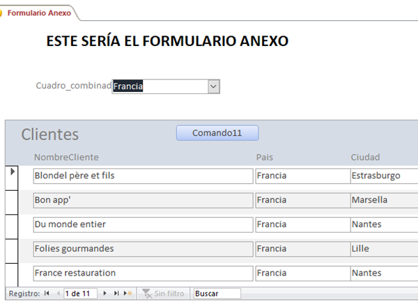 Búsqueda por cuadro combinado en un subformulario