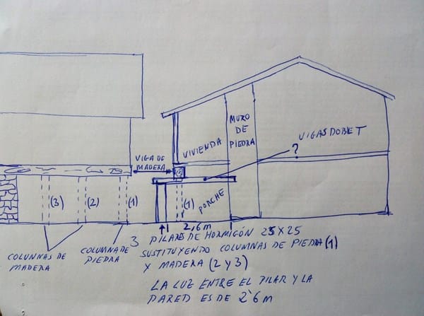 Quiero modificar un porche situado debajo de la vivienda para darle mas anchura y me sirva de cochera. La fachada se sustentada sobre una viga de madera que esta sostenida por 3 columnas, una de piedra en su extremo y 2 de madera. El otro extremo apoya sobre un muro de piedra que forma parte de un tramo de la fachada. Necesito quitar estas columnas y poner afuera 3 pilares de hormigón con tres vigas doble t que soporten la viga de madera. Las doble t irían empotradas en el otro extremo a una pared de piedra de 80 cm que hace de muro de carga. La pregunta es que tipo de doble t necesito. Gracias de antemano.