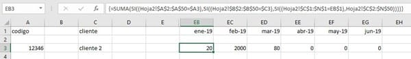 Tengo el siguiente problema: Necesito realizar una búsqueda con 3 variables. En este caso de HOJA1; variable 1: CÓDIGO (A), Variable 2: Cliente (B), Variable 3: Mes (EB1:EK1), se deben traer hacia HOJA1, los datos buscados en HOJA2. Las variables son las mismas en HOJA2, pero están contenidas en: CODIGO (A), Cliente (B), Mes (C1:N1). No se si realmente soy claro en la pregunta, les dejo unas fotos frente a alguna duda. Muchas gracias por su ayuda!