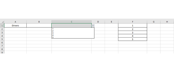 Lo que necesito es que cuando A1 tenga el nombre de una selección y B1 tenga cualquier otro dato, solo así me mostrará los datos en forma de lista desplegable en la celda C1.
