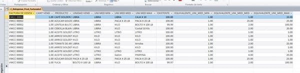 SELECT tb_factura.N_FACT AS [FACTURA DE VENTA], tb_facturar.cantidad AS [CANT VEND], tb_facturar.producto AS PRODUCTO, tb_facturar.UNI_MEDIDA AS [UNIDAD VEND], tb_productos.UNIDAD_MEDIDA_Min AS [UNI MED MIN], tb_productos.UNIDAD_MEDIDA_Med AS [UNI MED MED], tb_productos.UNIDAD_MEDIDA_Max AS [UNI MED MAX], tb_productos.CANTIDAD_INICIAL AS EXISTENTE, tb_productos.EQUIVALENTE_UNI_MED_MIN, tb_productos.EQUIVALENTE_UNI_MED_MED, tb_productos.EQUIVALENTE_UNI_MED_MAX FROM tb_productos INNER JOIN (tb_factura INNER JOIN tb_facturar ON tb_factura.N_FACT = tb_facturar.N_FACT_ID) ON tb_productos.NOMBRE_PRODUCTO = tb_facturar.producto WHERE (((tb_factura.N_FACT)=[Formularios]![frm_Factura_Anular]![N_FACT_ID]));