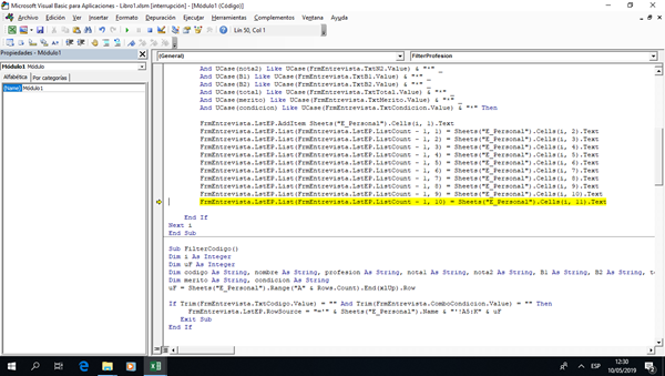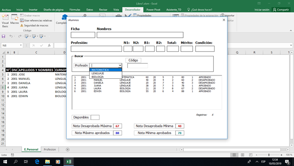 Este el formulario que me carga bien con los registros el problema me da la hora de filtrar para buscar después por código.