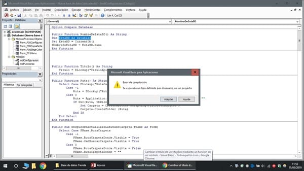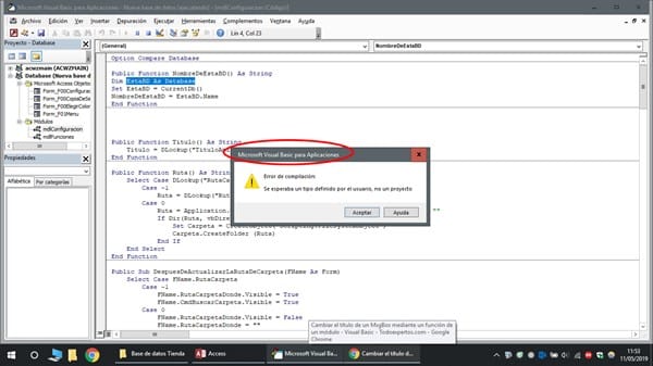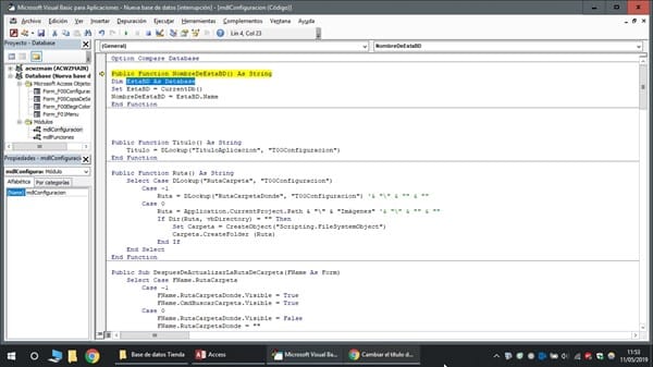 estoy intentando cambiar el título de un MsgBox. Quiero que tome el nombre de la base de datos. Para ello, he creado esta función en un módulo normal: