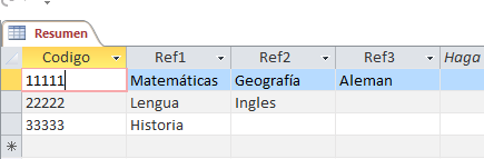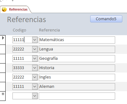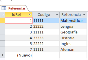 Y una tabla Referencias