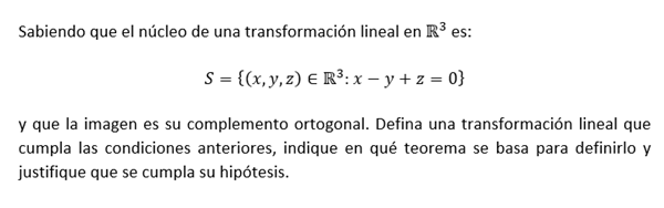 Hola expertos, por favor, me podrían dar una mano para resolver el siguiente ejercicio de Transformaciones Lineales, desde ya muchas gracias a todos, este es un tema que me cuesta mucho.