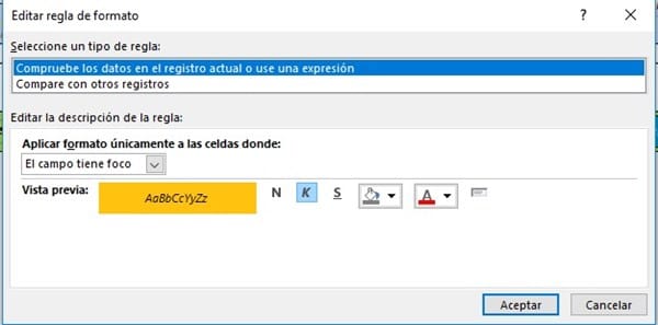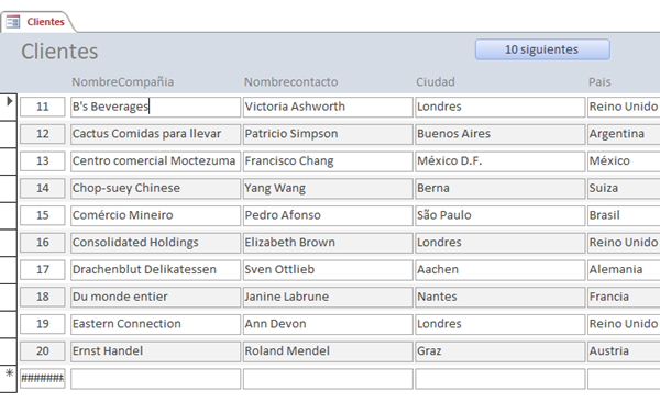 Posición en formulario continuo en ACCESS