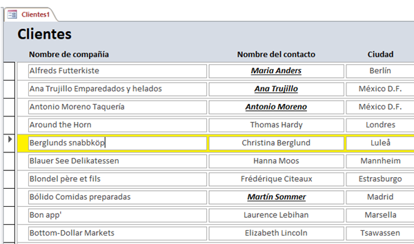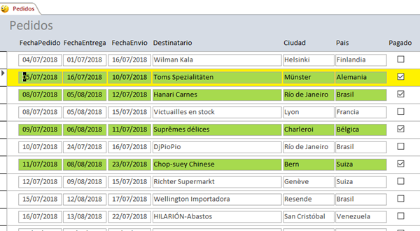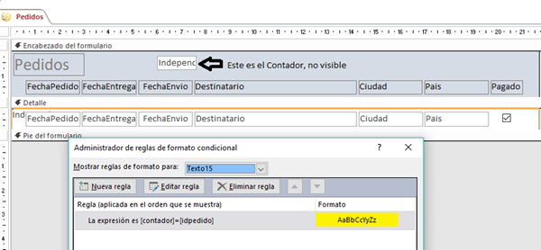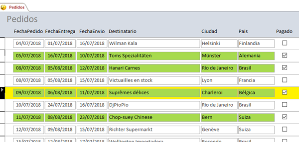 Tengo un formulario continuo y necesito que cuando este en ese registro, se pongan los campos que tiene ese registro activo en otro color, pero solo esa fila, hasta ahora lo he conseguido siguiendo un ejemplo vuestro de Icue González(Supongamos que tengo un formulario continuo Clientes. En el encabezado del formulario le añado un cuadro de texto Texto9 oculto(lo dejo visible para que lo veas). En el evento Al activar registro del formulario le digo