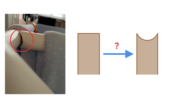 Quiero reemplazar un listón de madera de una cuna. Este listón tiene los extremos cóncavos. Cada extremo se acopla a otro listón circular: