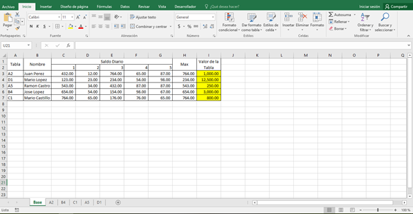 Necesito de su ayuda con una Macro tengo una base de datos a la cual en la columna A tiene el nombre de las hojas a las cuales debo ir a buscar el último valor numérico de la columna C y copiarlo en la columna I de la hoja Base.