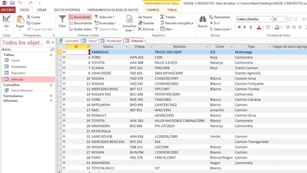 Necesito hacer consultas en access, tengo cuatro tablas, en una Tengo un listado de muchos vehículos y se me complica