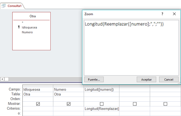Ante todo, buenas noches y mi agradecimiento de antemano. En la consulta quiero excluir un campo que contiene datos como: 12,16,24 ó 8,9,14,21,36,38 (números separados por comas). He usado "NoEs Como "*,*,*" ó NoEs Como "*,*,*,*,*,*", pero skn resultados. Alguna sugerencia?.