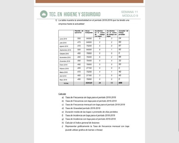 e) Duración media de las bajas o promedio de días perdidos f)