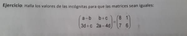 Igualación de matrices con incógnitas.