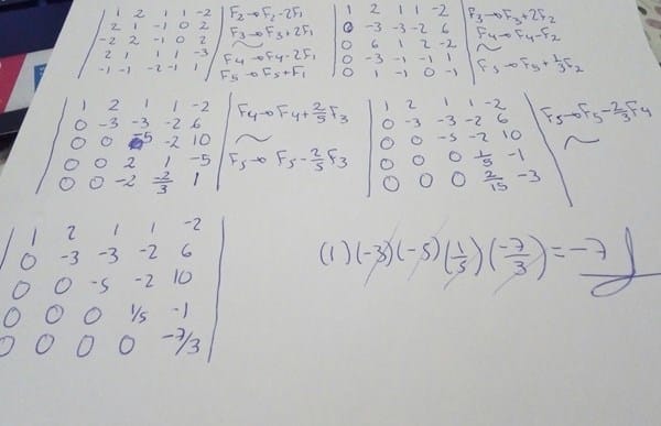 Hallar el determinante de la siguiente matriz, Emplear el método más eficiente o el conocido por usted.
