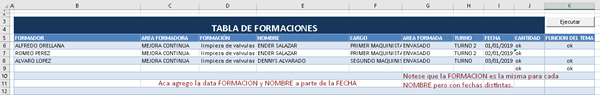 En esta tabla tengo tres datos que me interesan: la FORMACIÓN y el NOMBRE y la FECHA.