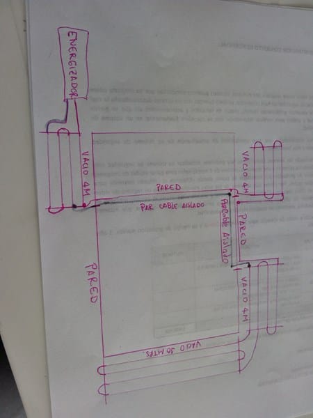 Voy hacer un cercado eléctrico en mi casa. Tengo un plano construido a modo de ejemplo de como yo colocaría el alambrado y deseo me lo supervisaran si esta bien o debo hacerle alguna modificación. En el plano no le he colocado el numero de lineas que serian 6 así como el alambre para tierra. Agradezco sus sugerencias.