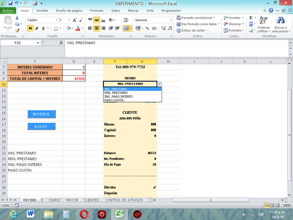 ¿Existe la posibilidad que en un recibo en excel me cambie la fórmula de acuerdo al concepto?