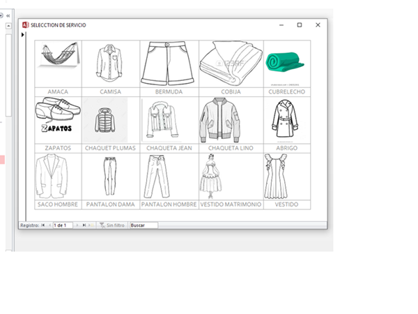 Compañeros tengo una tabla que se llama prendas digamos un ejemplo hay 5 registros uno es pantalón, camisa, chaqueta, jean, camiseta. Quiero hacer un formulario donde pueda poner botones que tengan imágenes de los registros y que al oprimir el botón me ponga en la descripción el registro con el nombre y el precio.
