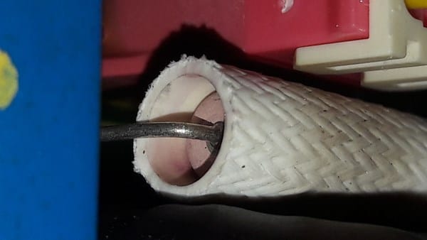 Se había roto el cordón que sujeta el resorte de la puerta, pero no lo sabíamos, solo sabíamos que la puerta había dejado de cerrar como antes. La seguimos usando así, a mi pesar, quería que mi chico la abriera y evitara que surgiera un fallo consecuencia de este mal uso.