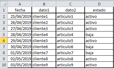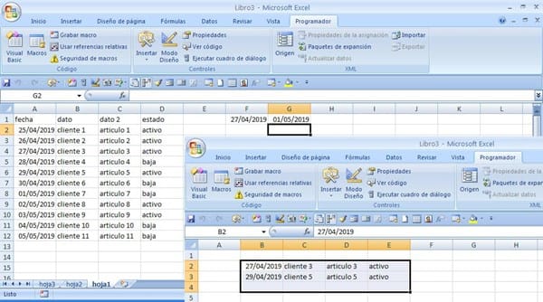 Necesito ayuda para desarrollar una pequeña macro que pueda copiar valores de la hoja2 a la hoja1, en la hoja2 tengo datos como se muestra en la imagen y en la hoja 1 poder copiar los datos según el rango de fechas si en la hoja1 coloco en A1 (fecha inicial) y B1 (fecha final) se pueda copiar ese rango pero solo los que estén con estado ACTIVO.