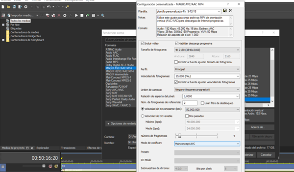 He notado que Vegas pro 16 no me renderiza usando la GPU a pesar de que selecciono renderizar usando mainconcept AVC.