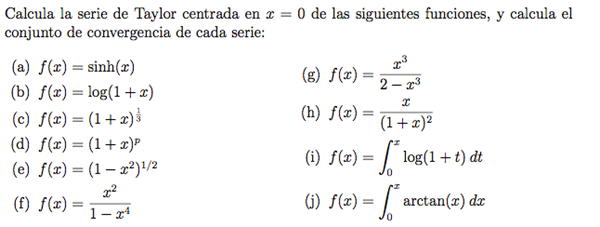 MatemáticasCálculoCiencias e Ingeniería Anónimo el 2 jun. 19 Calcular series de Taylor y conjunto de convergencia Seguir Siguiendo Dejar de seguir