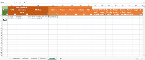En la hoja llamada Template, busco los valores a partir de la celda AI3 hacia abajo, los valores a coincidir están a partir de la celda AL2 hacia la derecha en ambos casos los rangos finales nunca es el mismo, así que me imagino debe tomarse como rango final la ultima fila y columna con datos.