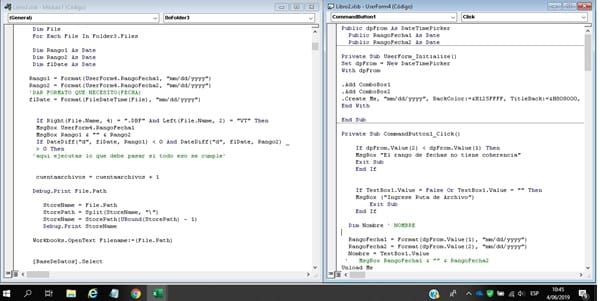 Todo estaba bien hasta que me solicitaron que se puedan ingresar parametros de texto, a lo que añadi un formulario con 2 combobox y a estos les añadi la clase date time picker (userform4).