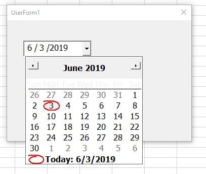 Adjunto como cree el data time picker Private Sub UserForm_Initialize() Set dpFrom = New DateTimePicker With dpFrom .Add ComboBox1 .Add ComboBox2 .Create Me, "dd/mm/yyyy", BackColor:=&H125FFFF, TitleBack:=&H808000, Trailing:=&H99FFFFF, TitleFore:=&HFFFFFF End With End Sub