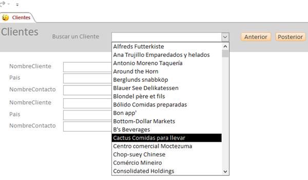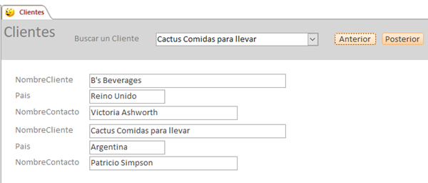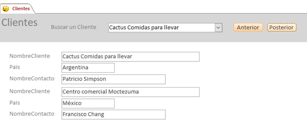 Es decir, arriba el registro anterior al cliente ese, y si por el contrario pulso Posterior