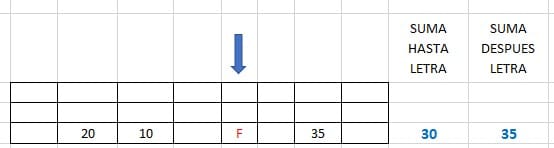 Necesitaría por favor una fórmula que cuando encuentre la letra "f" o"m" me sume las cantidades en la misma fila hasta la letra, y me las ponga en una celda y me sume las cantidades después