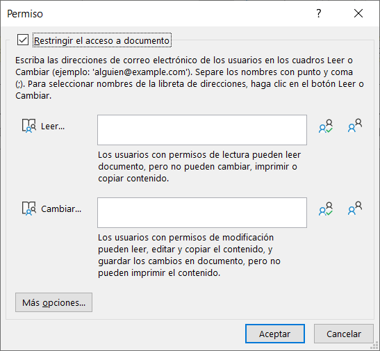 Tengo unos documentos office (Word y Excel básicamente) en una biblioteca de SharePoint. Estos documentos tienen activada la restricción de permisos para acceso:
