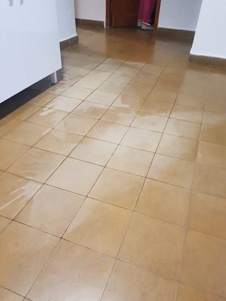 Limpiar piso con mancha de vinagre y bicarbonato.