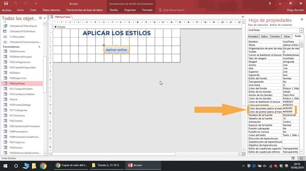 Tengo un código sacado que soluciona el problema del color de los botones cuando exportas el contenido de una base de datos a otra, debido a que pone UsarTema en False. Con este código, lo que hace es revisar cada uno de los formularios y volver a poner ese UsarTema en True. Sin embargo, el hover del texto del botón lo quiero en el mismo color que el color normal, pero no me lo copia, me lo deja en color blanco. A ver si alguien me puede dar orientación de cómo solucionar, creo que el problema está en ctl. BackColor.