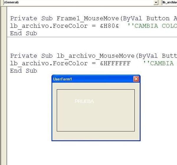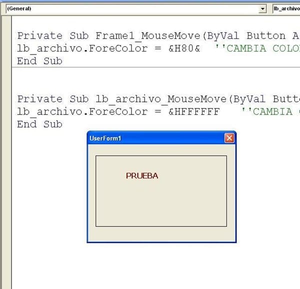 Cambiar label de color al pasar el ratón y que vuelva a su color original (vba excel)