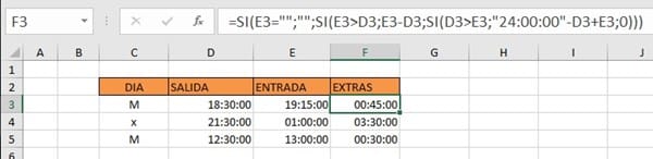 Pero bien pude imaginar que la Salida es el fin de un turno y la Entrada el inicio del otro... por lo tanto la fórmula te calcula '... cuántas horas hay entre el fin de un turno y el inicio del siguiente turno ...'