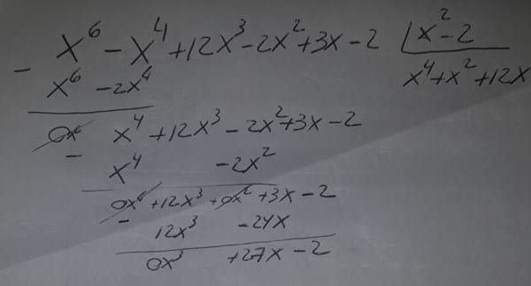 $$\begin{align}&a-(−2+12x3+x6−2x2+3x−x4):(x2−2)\end{align}$$