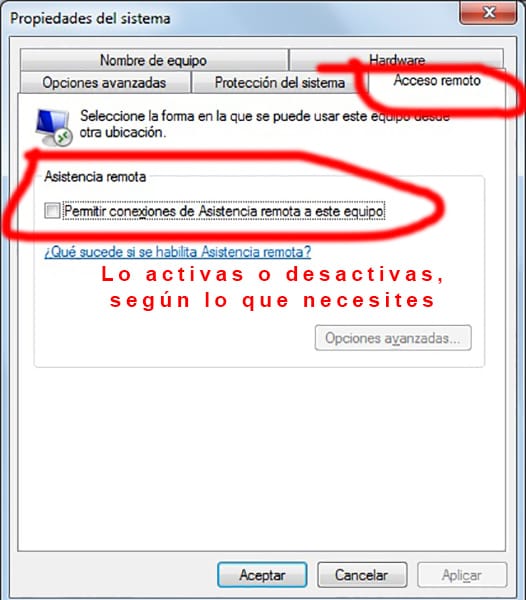 El escritorio remoto entras a propiedades del equipo y por ahí vas a EScritorio remoto