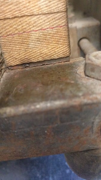 - El chispazo siempre salta en el mismo sitio (detalle de la foto inferior). Es la zona donde están las laminas del núcleo y el chispazo es tan fuerte que ya esta agujereando/soldando la lamina de fuera. Mi teoría es que el núcleo tiene potencial y esta tan cerca de la pieza de abajo (que esta conectada a chasis-tierra) que salta un arco entre la lamina y el bastidor... El caso es que he medido continuidad entre la lamina y los diferentes terminales del transformador y no me da ninguna... Asique ahí ya me pierdo...