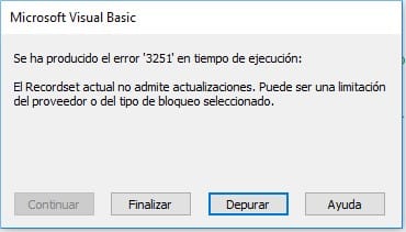 Quiero actualizar una tabla de SQL Server desde VBA ACCESS y me da error a la hora de modificar los datos de la tabla. Leer si me permite pero no modificarlos. Adjunto el error y el código que estoy usando para la conexión.