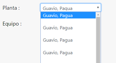 <select class="form-control " name="select_planta_input"> <?php include("conexion.php"); session_start(); $query = "SELECT planta FROM datos_restricciones "; foreach($conn->query('SELECT planta FROM datos_restricciones ') as $row) { echo '<option>'.$row['planta'].'<option/>'; } ?> </select>