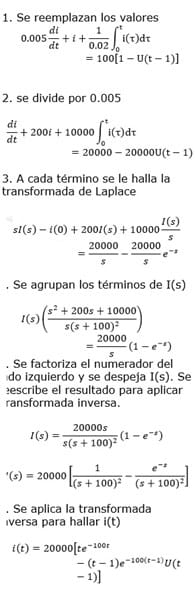 Utilizando la transformada de Laplace encuentre si ; ; c=0.02 F y e