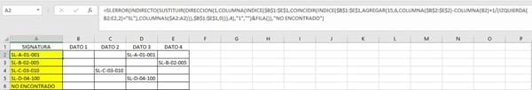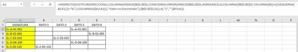 ¿Qué debo hacer para buscar la signatura de cada fila, copiarla y pegarla en la celda vacía correspondiente de la columna A?